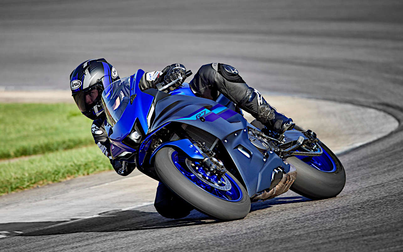 El incontestable motor CP2 de 689 cc con embrague A&S proporciona una aceleración de alto par para lograr una experiencia de pilotaje excitante y gratificante, tanto en circuito como en carretera. Con un acabado en color y gráficos Icon Blue de última generación, la superesbelta carrocería aerodinámica presenta un agresivo carenado de doble óptica con un potente faro LED central. El afilado colín y el depósito profundamente esculpido han sido moldeados a imagen del ADN puro de la gama R, mientras que los frenos y las suspensiones de altas especificaciones de la R7 ofrecen un control óptimo en las curvas y al frenar.